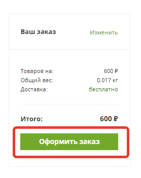 Также оформить заказ можно в правой колонке “Ваш заказ”. Здесь же проверьте итоговую стоимость заказа.