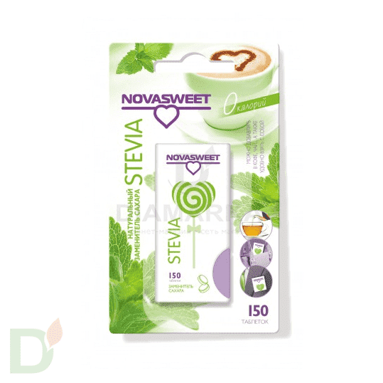 <h2>Натуральный заменитель сахара без калорий и углеводов</h2> Подсластитель Стевия в таблетках от NOVASWEET - классный современный сахзам в карманном формате. Компактную плоскую упаковку очень удобно брать с собой на работу, учебу, в поездки и путешествия, либо просто носить в сумке в качестве НЗ на случай внепланового чае- / кофепития.<br> <br> <h3>Чем хорош подсластитель NOVASWEET Стевия</h3> <ul> <li>в составе натуральный безопасный заменитель сахара: очищенный экстракт листьев стевии - стевиозид</li> <li> не содержит калорий и углеводов</li> <li> не оказывает влияния на уровень сахара крови и фигуру</li> <li> не содержит химических сахзамов вроде сахарина или цикламата</li> <li> имеет приятный натуральный вкус без постороннего привкуса</li> <li> удобно носить с собой, сахзам с легкостью поместится даже в карман</li> </ul> Подсластитель NOVASWEET одобрен Роспотребнадзором для использования в пищу. 1 таблетка по сладости соответствует 1 чайной ложке сахара.<br> <h3>Состав подсластителя</h3> Лактоза, подсластитель - натуральный экстракт листьев стевии, разрыхлитель - сода пищевая, регулятор кислотности - винная кислота, стабилизатор - карбоксиметил-целлюлоза, лубрикант - лейцин.<br> <br>